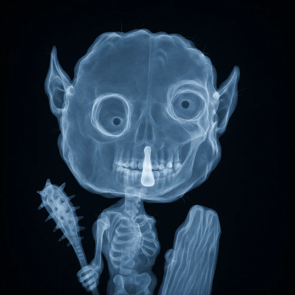 An innovative collection transforming characters into hyper-realistic, cinematic radiograph images. Featuring glowing skeletal silhouettes on deep black backgrounds, each piece showcases high-resolution, medical imaging-inspired visuals with subtle soft tissue haze and scan artifacts for striking realism and depth.